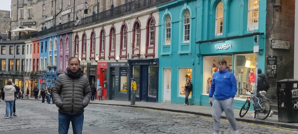 আমরা এগিয়ে যাই। ভিক্টোরিয়া স্ট্রিটের দিকে। বিশ্বখ্যাত হ্যারী পর্টারের লেখিকা জে কে রাউলিং এখানে লিখতেন একসময়। এ সড়ক হচ্ছে সবচেয়ে বেশি ছবি তোলার জায়গা এডিনবারায়। রোমেই যখন, তখন রোমান হই। আমরাও নানান ঢং এ না হলেও, নানান ভাবে ছবি তুলি।